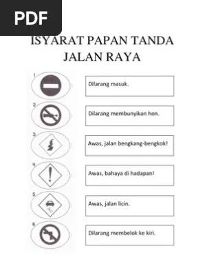 Simbol papan tanda jalan raya. Puedes hacer los ejercicios online o descargar la ficha como pdf. This document was uploaded by user and . Download kenali papan tanda isyarat di jalan raya.
